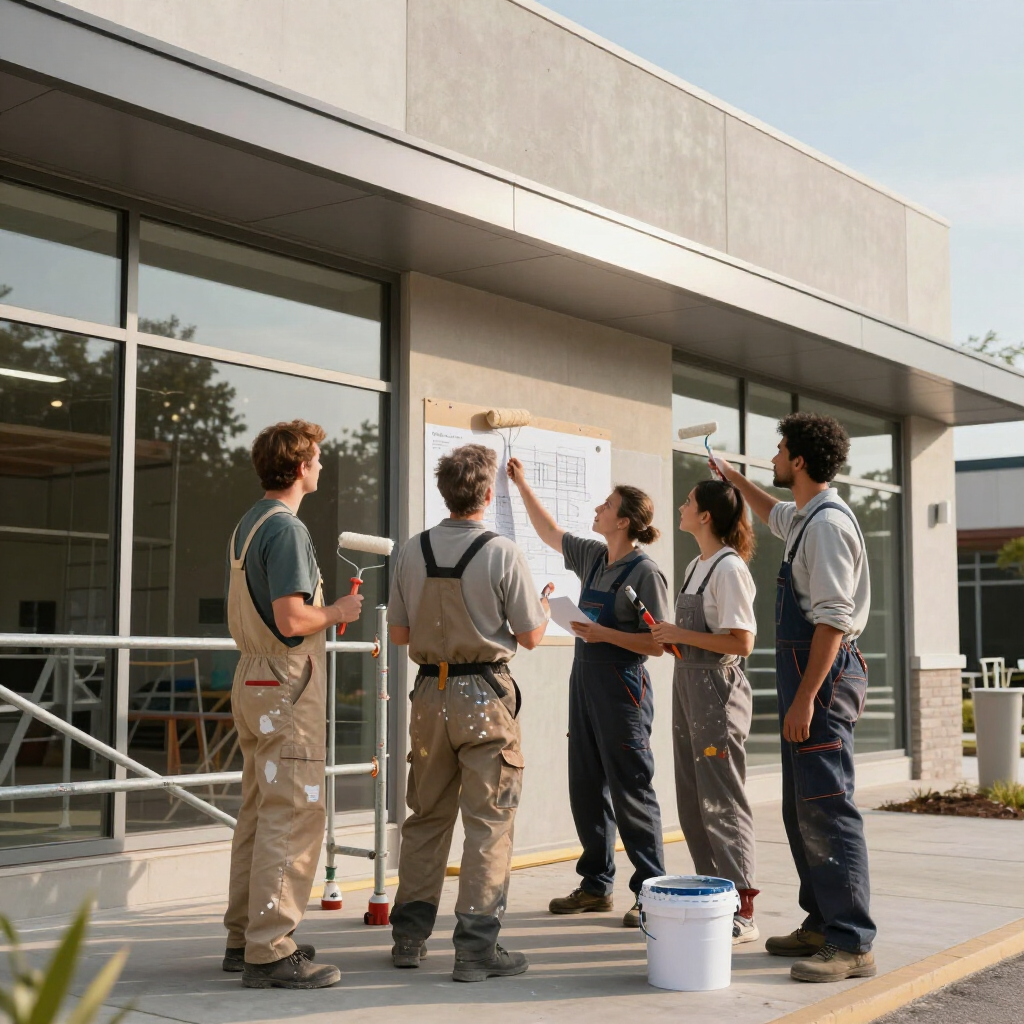 A selection of our recent interior and exterior painting projects demonstrating precise application and attention to detail across diverse environments.